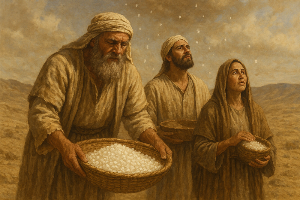 - 백성들은 매일 아침마다 하나님이 주신 맛나를 거두어 하루 먹을 만큼만 사용.